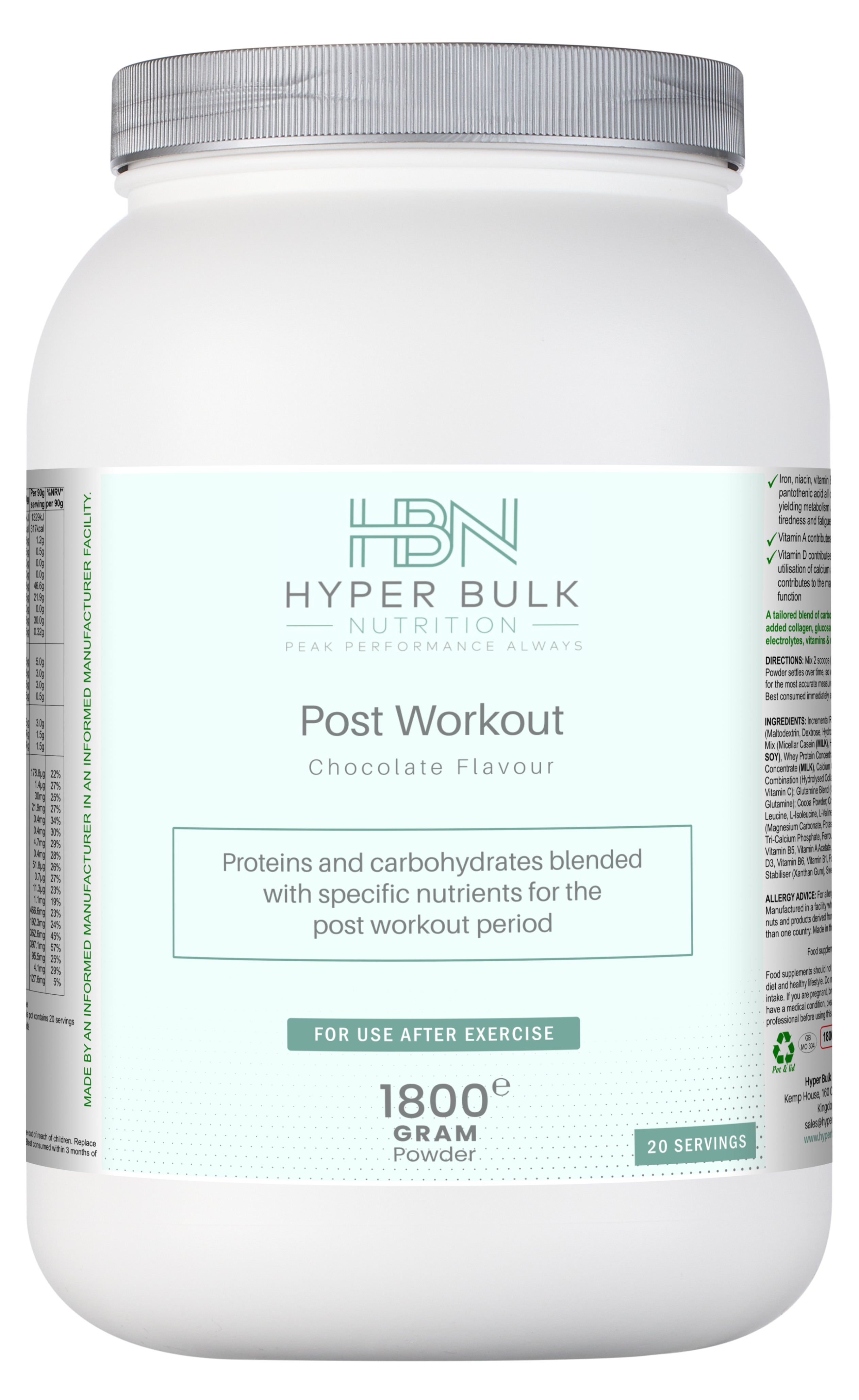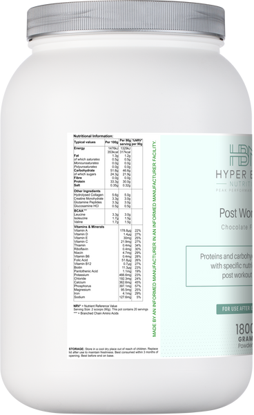 Post workout formula for improved recovery, phased energy replenishment and rehydration (chocolate flavour):