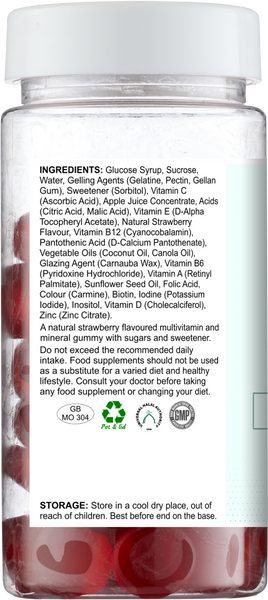 A multi-vitamin and multi-mineral chewable gummy supplement for adults. Ideal for those who hate pills, tablets and capsules or have difficulty swallowing - gummies are a fun and tasty way to take vitamins.